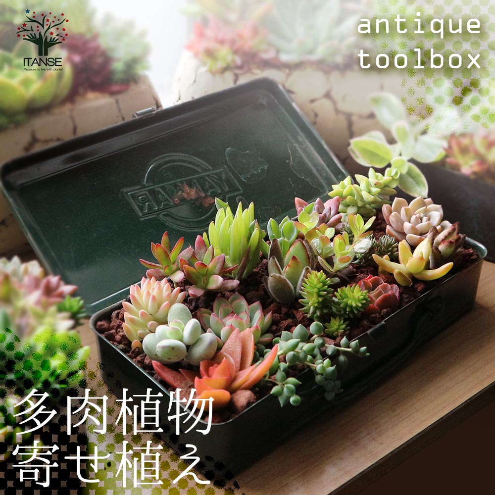 多肉寄せ植え アンティーク工具箱【多肉植物 (蓋を開けた状態サイズイメージ:高さ約12cm×幅約23cm×奥行約22cm)/1個売...