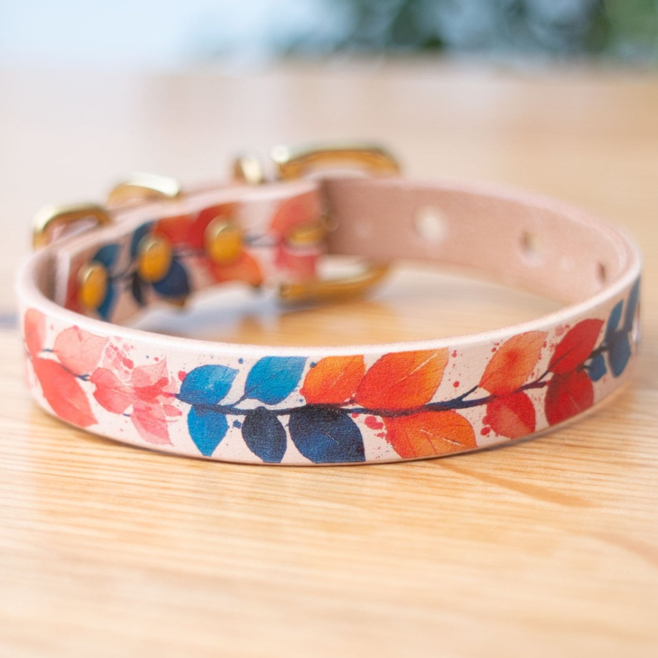Framer アートなグラフィック本革首輪 にじみ絵リーフ 真鍮無垢金具 サイズSS~L ベルト幅16mm #23490
