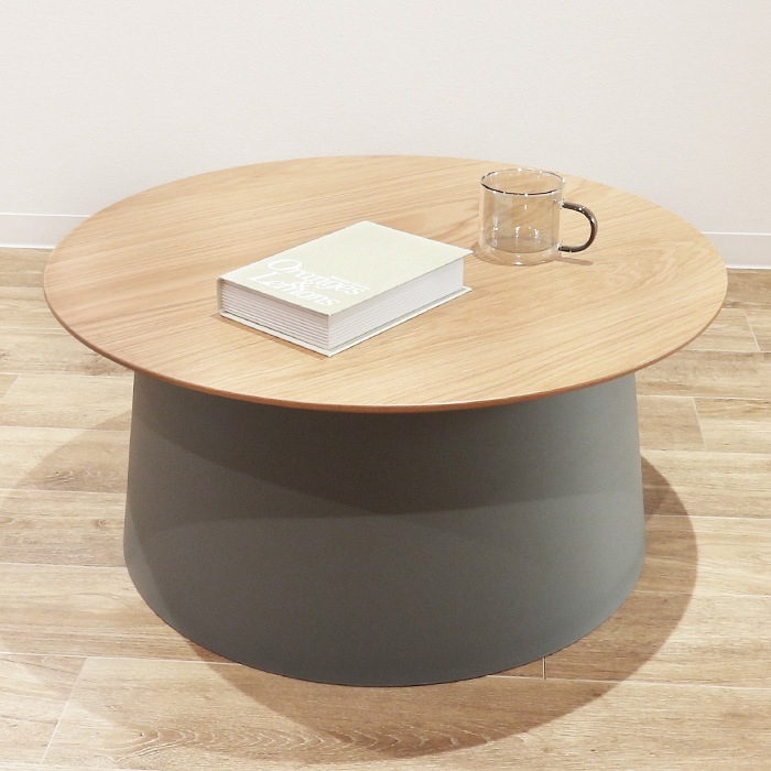 オーク調 ウッド天板 ラウンドテーブル 直径69cm 高さ32.5cm グレー|カフェテーブル・ティーテーブル・リビング・寝室・モ...