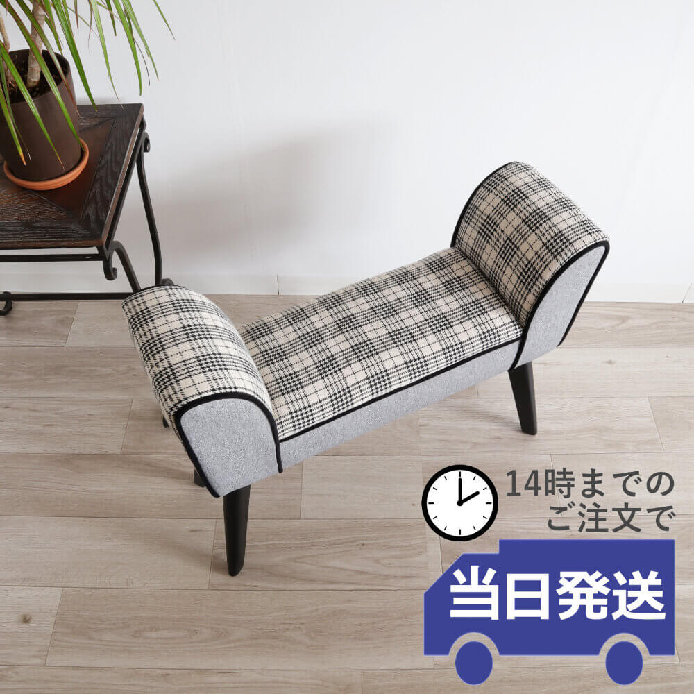 スツールベンチS 椅子 グレー&チェック 軽量 座面高さ40cm|おしゃれなインテリアの輸入雑貨イエ【公式通販】