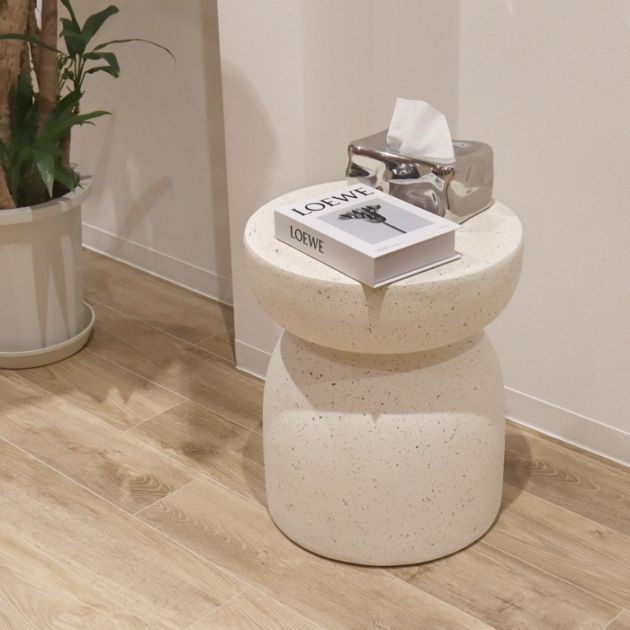 テラゾー柄 スツール サイドテーブル 高さ46.5cm 人工石 オフホワイト|丸椅子・丸形チェア・玄関・リビング・韓国インテリア・...