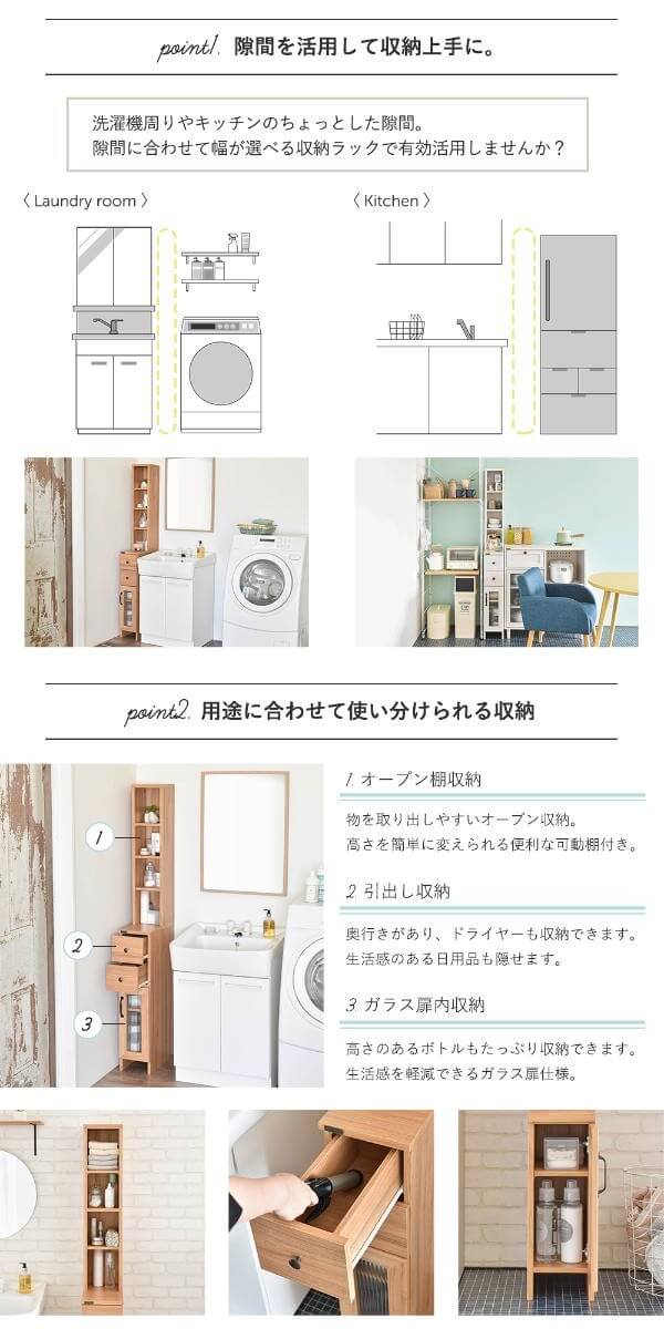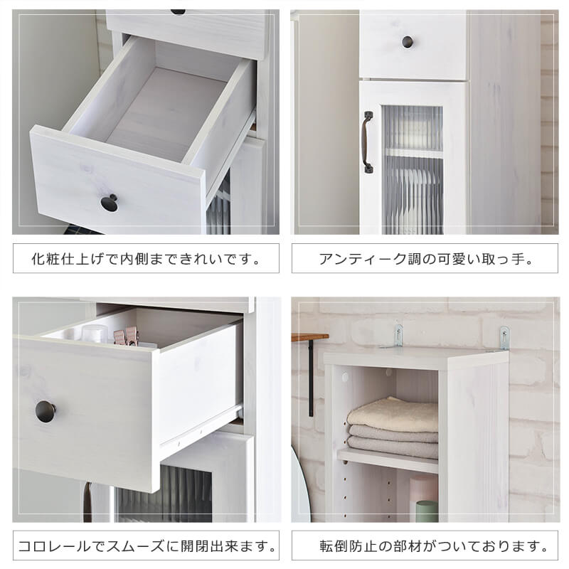 ランドリー収納 ランドリーチェスト 隙間収納 幅81cm すき間チェスト サニタリー収納 引き出し