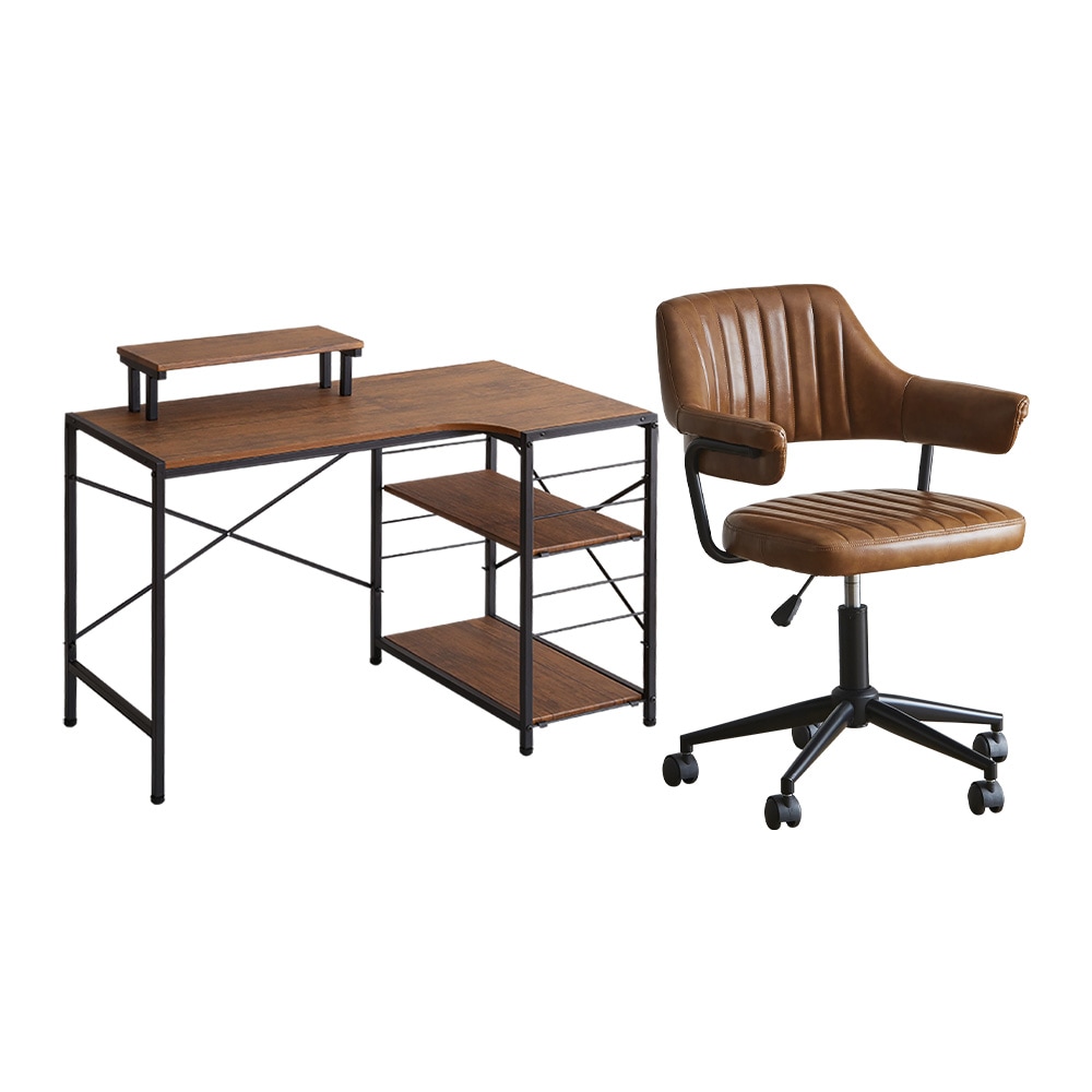 ヴィンテージ風 ガス圧昇降 デスクチェアセット 【GABBY×Lubbock】 SH-22-GVSET-SH-BR SH/ブラウン