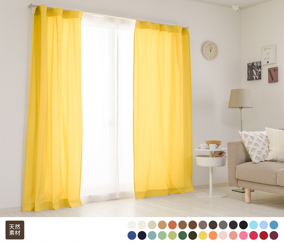 綿(コットン)100% 無地 さらっとした触り心地のオックス織り天然素材カーテン イエロー