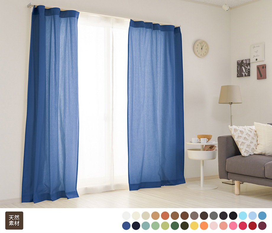 綿(コットン)100% 無地 さらっとした触り心地のオックス織り天然素材カーテン サイレントブルー