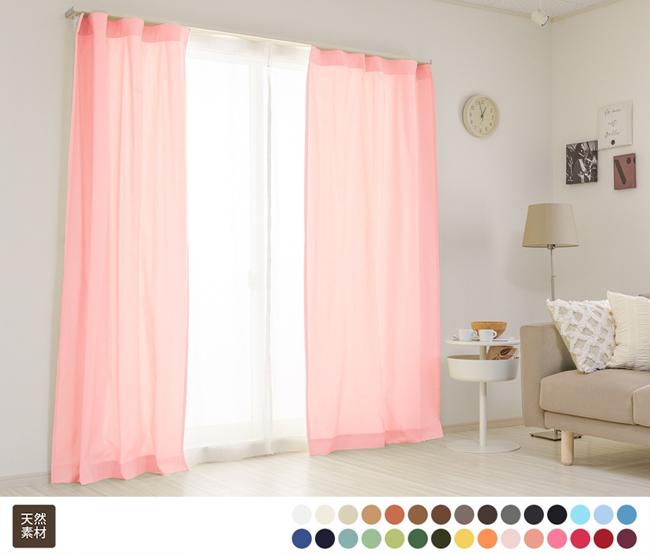 綿(コットン)100% 無地 さらっとした触り心地のオックス織り天然素材カーテン ライトピンク