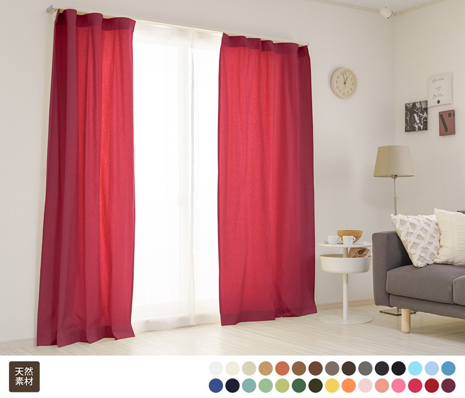 綿(コットン)100% 無地 さらっとした触り心地のオックス織り天然素材カーテン ワイン