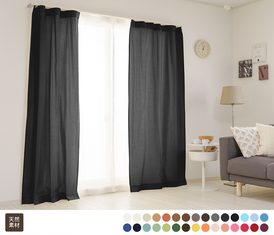 綿(コットン)100% 無地 さらっとした触り心地のオックス織り天然素材カーテン ブラック