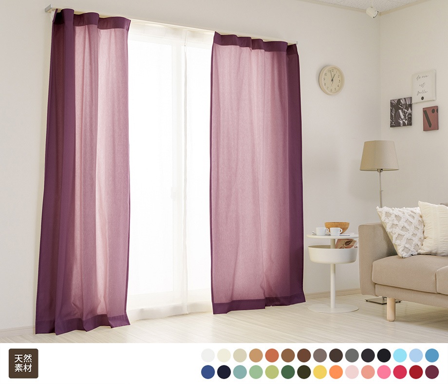 綿(コットン)100% 無地 さらっとした触り心地のオックス織り天然素材カーテン ナチュラル