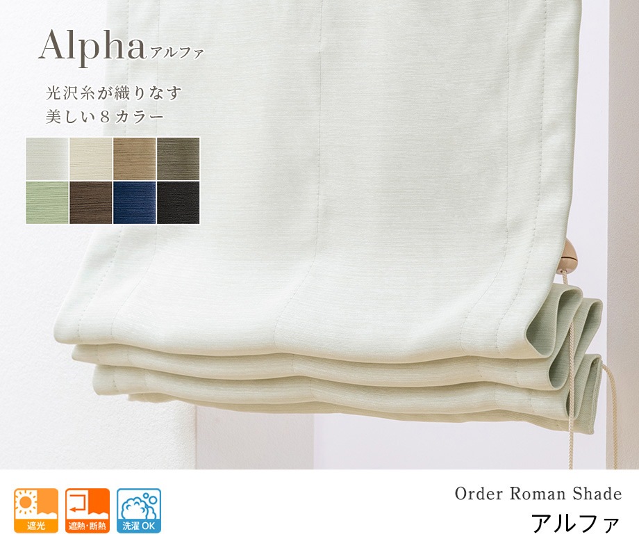 【幕体のみ】主張しすぎない光沢と繊細な織り感が美しい遮光ローマンシェード「アルファ」非防炎タイプ グリーン(1級遮光)【買い替え用...