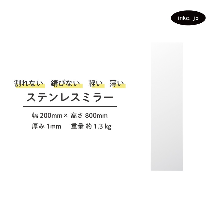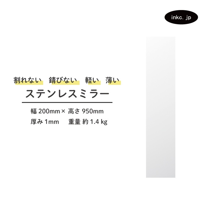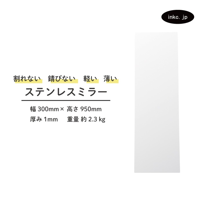 ステンレスミラー 大型 両面シール付属 貼る 壁掛け 割れない 幅300 高さ950 厚み1 | 品番INK-0701028H
