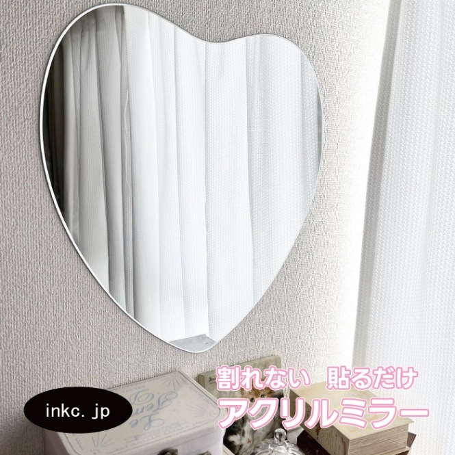 鏡 洗面鏡 アクリル シール付き 貼る 壁掛け 割れない おしゃれ ハート リフォーム DIY 幅450 高さ470 厚み5 | ...