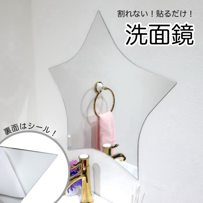鏡 洗面鏡 アクリル シール付き 貼る 壁掛け 割れない おしゃれ 星 スター リフォーム DIY 幅545 高さ525 厚み4 ...