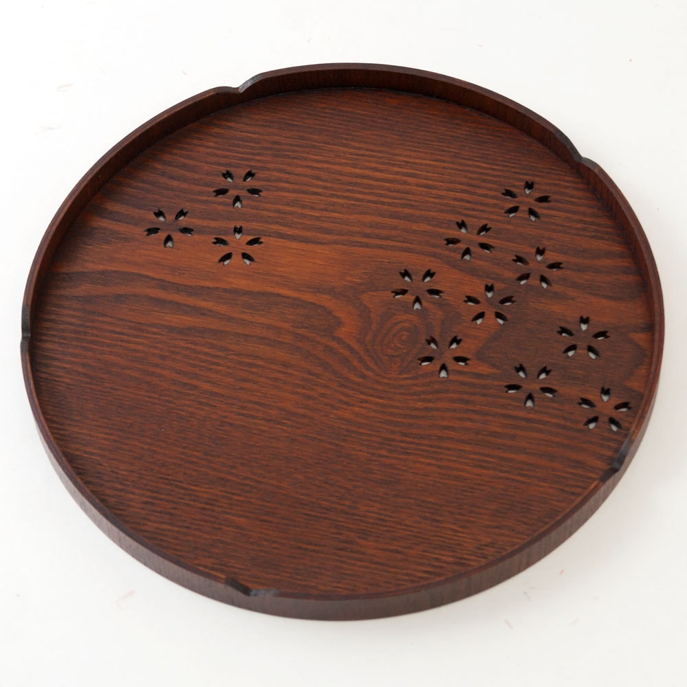 丸盆 木製漆塗りのお盆 桜花模様 Wooden tray