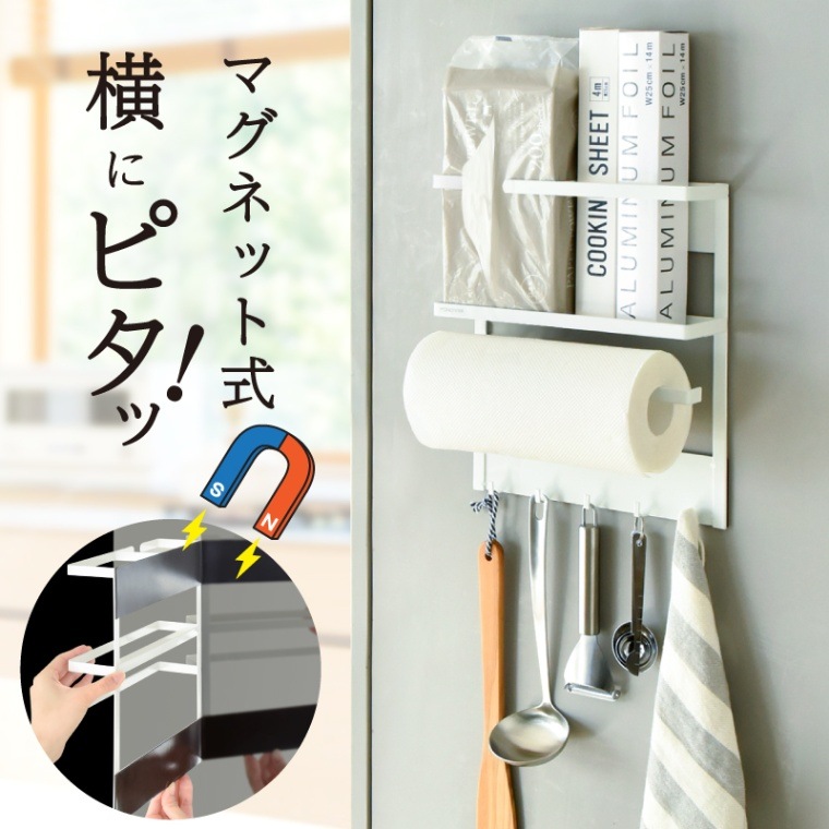 キッチンサイドラック 冷蔵庫サイドラック マグネット キッチンペーパーホルダー キッチンラック 冷蔵庫ラック 磁石 スパイスラック...