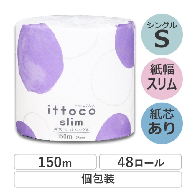 業務用 トイレットペーパー シングル 150m 48ロール イットコ 有芯 スリム幅(107mm) ミシン目なし 無香料 1015...