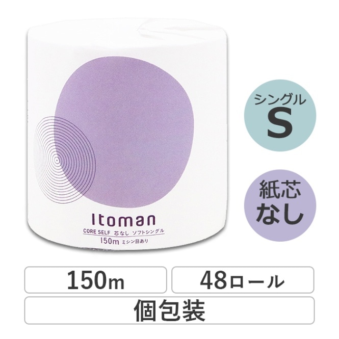 業務用 トイレットペーパー シングル 150m 48ロール イトマン 芯なし 普通幅(114mm) 1ロール ミシン目あり 無香料...