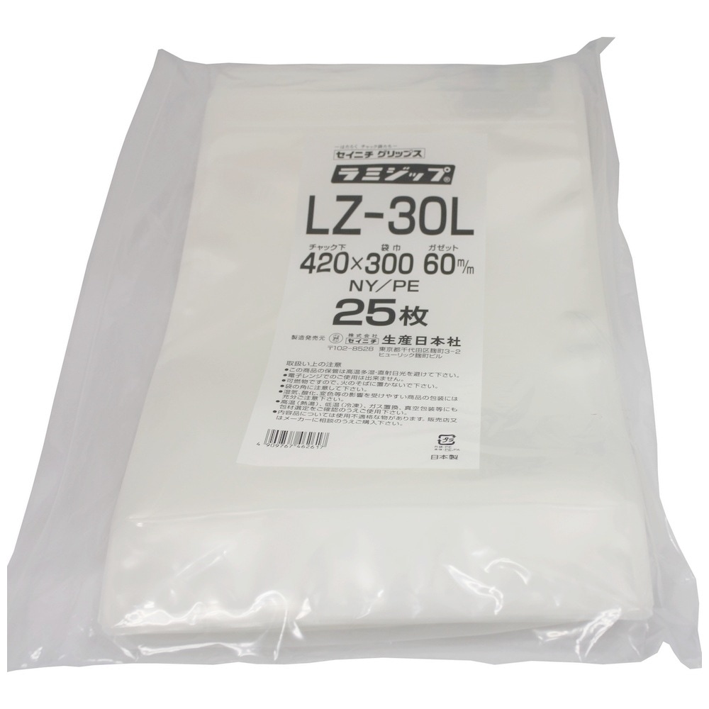 ラミジップ スタンドタイプ LZ-30L 420×300+60mm 25枚×12袋●ケース販売お得用【メーカー直送】