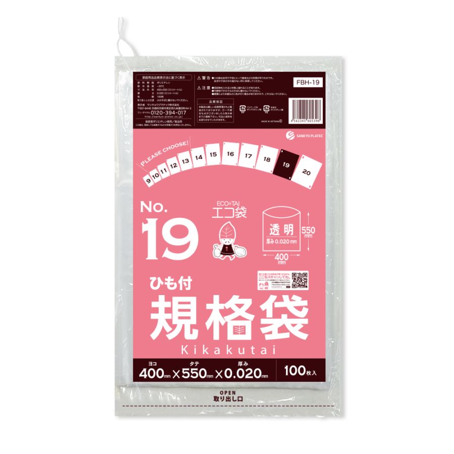 規格袋19号 ひも付 透明 0.020mm厚(100枚×20冊)