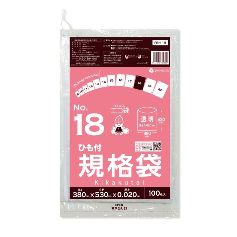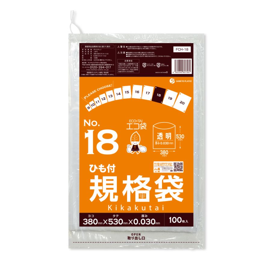 規格袋18号 ひも付 透明 0.030mm厚(100枚×20冊)