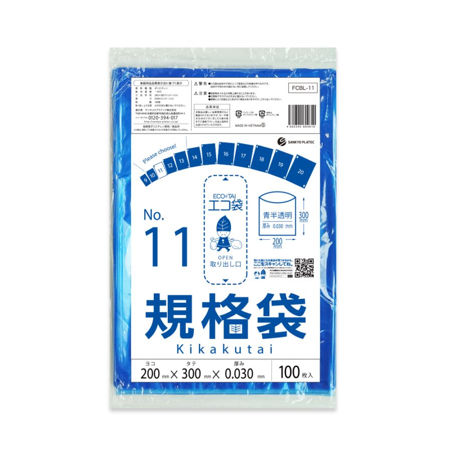 北海道規格 ひも無し 11号 0.030mm厚(100枚×30冊)