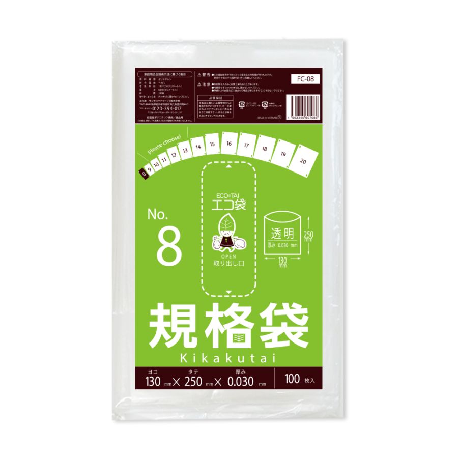 規格袋8号 透明 0.030mm厚(100枚×100冊)
