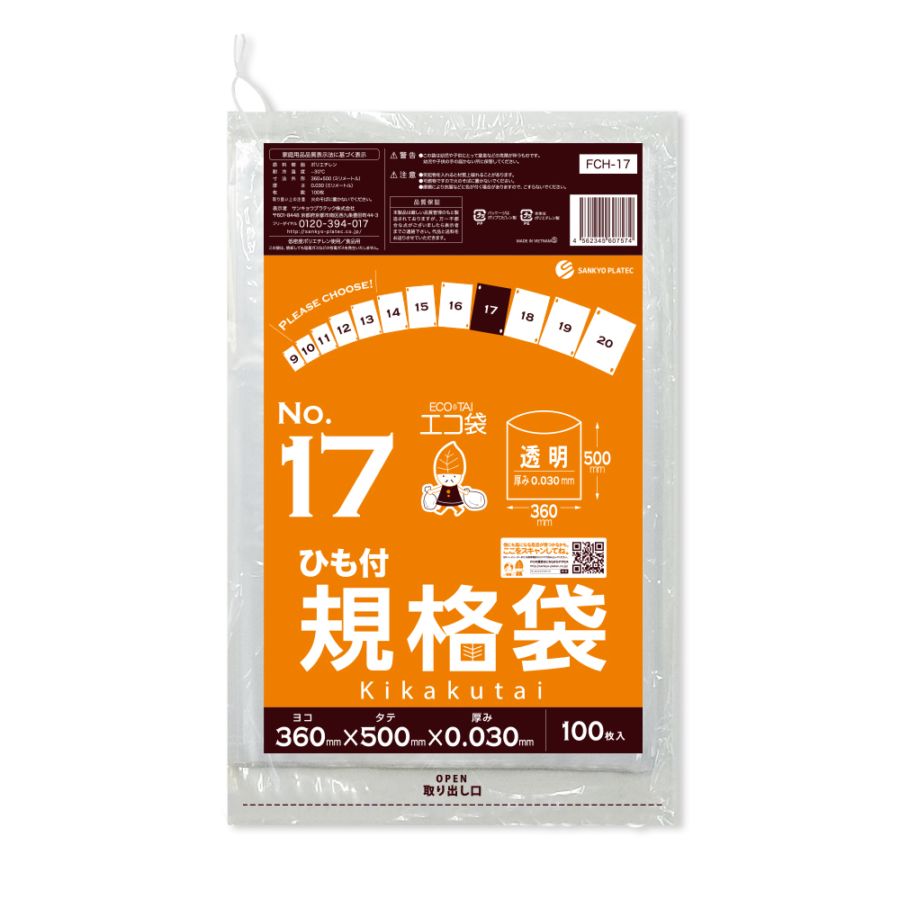 規格袋17号 ひも付 透明 0.030mm厚(100枚×20冊)