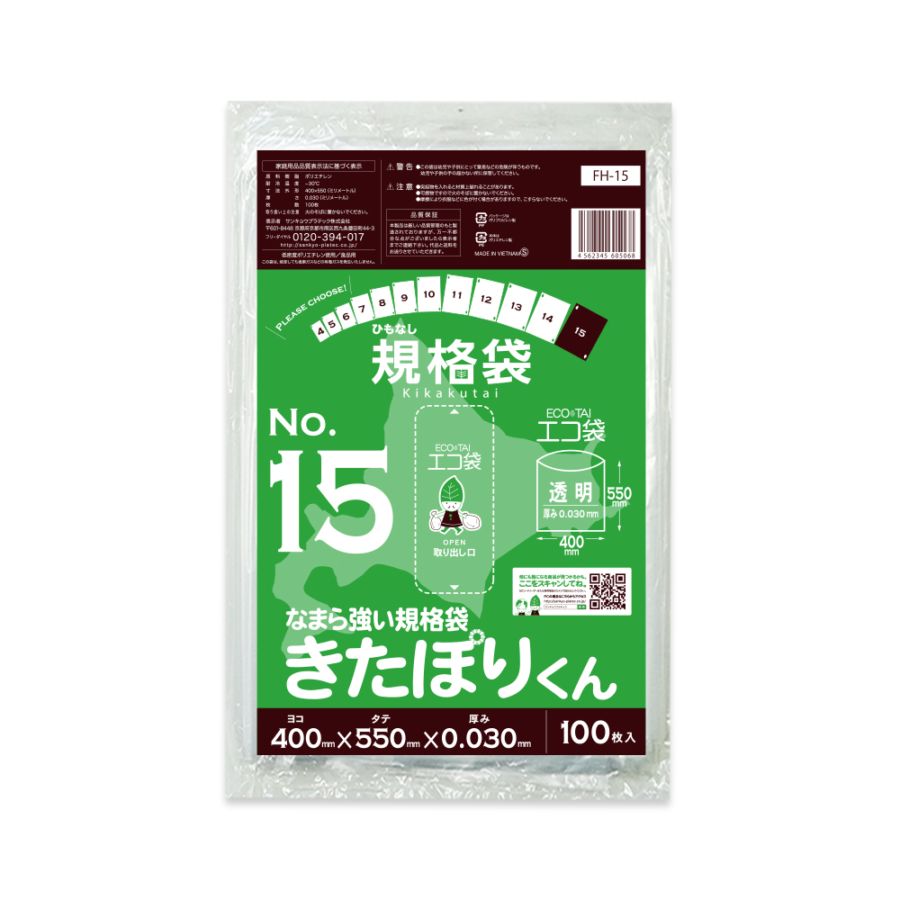 北海道規格 ひも無し 15号 0.030mm厚(100枚×20冊)