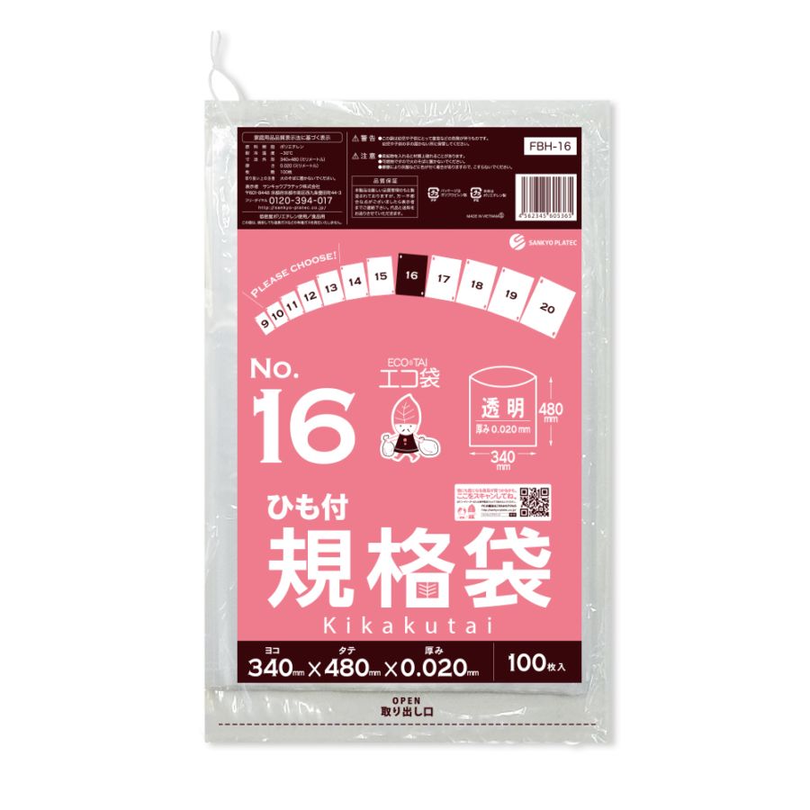 規格袋16号 ひも付 透明 0.020mm厚(100枚×30冊)