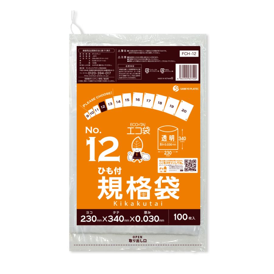 規格袋12号 ひも付 透明 0.030mm厚(100枚×40冊)