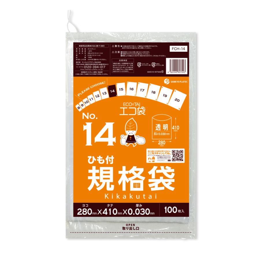 規格袋14号 ひも付 透明 0.030mm厚(100枚×30冊)
