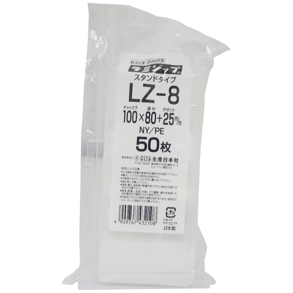 ラミジップ スタンドタイプ LZ-8 100×80+25mm 50枚×48袋●ケース販売お得用【メーカー直送】