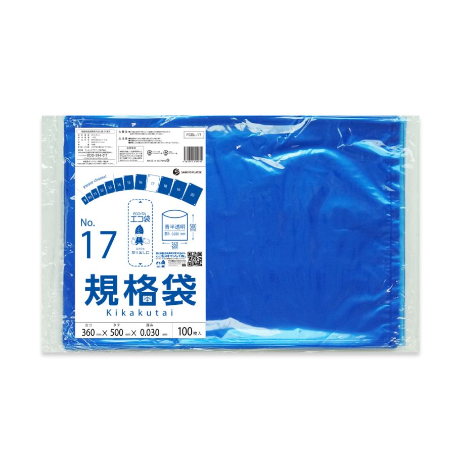 規格袋17号 青半透明 0.030mm厚(100枚×20冊)