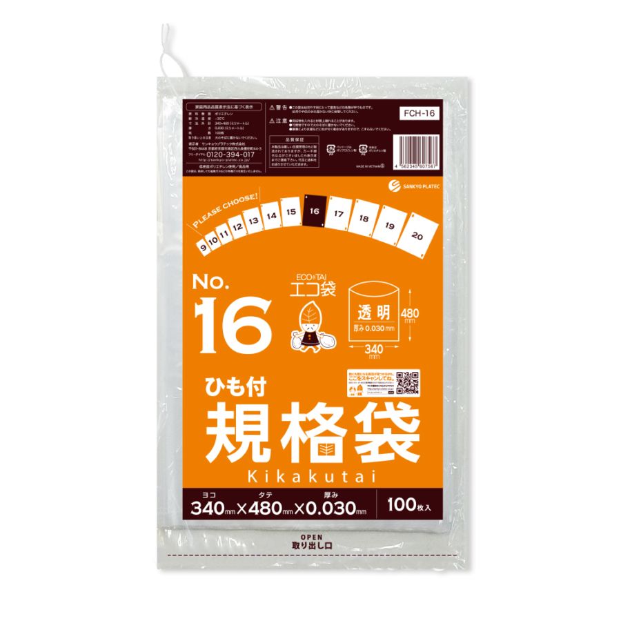 規格袋16号 ひも付 透明 0.030mm厚(100枚×20冊)