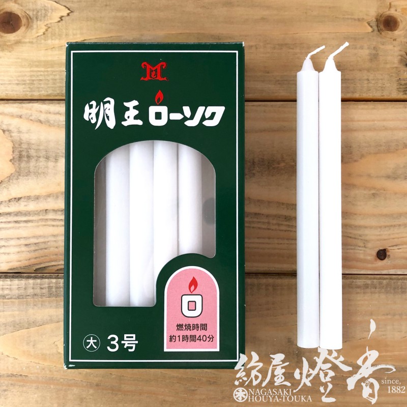 普通蝋燭『明王ローソク【大ロー/10号[450g/12本]】紙箱[燃焼5時間]』マルエス