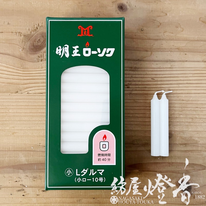 普通蝋燭『明王ローソク【Lダルマ(特大ダルマ)/小ロー/10号[225g/64本]】紙箱[燃焼40分]』マルエス