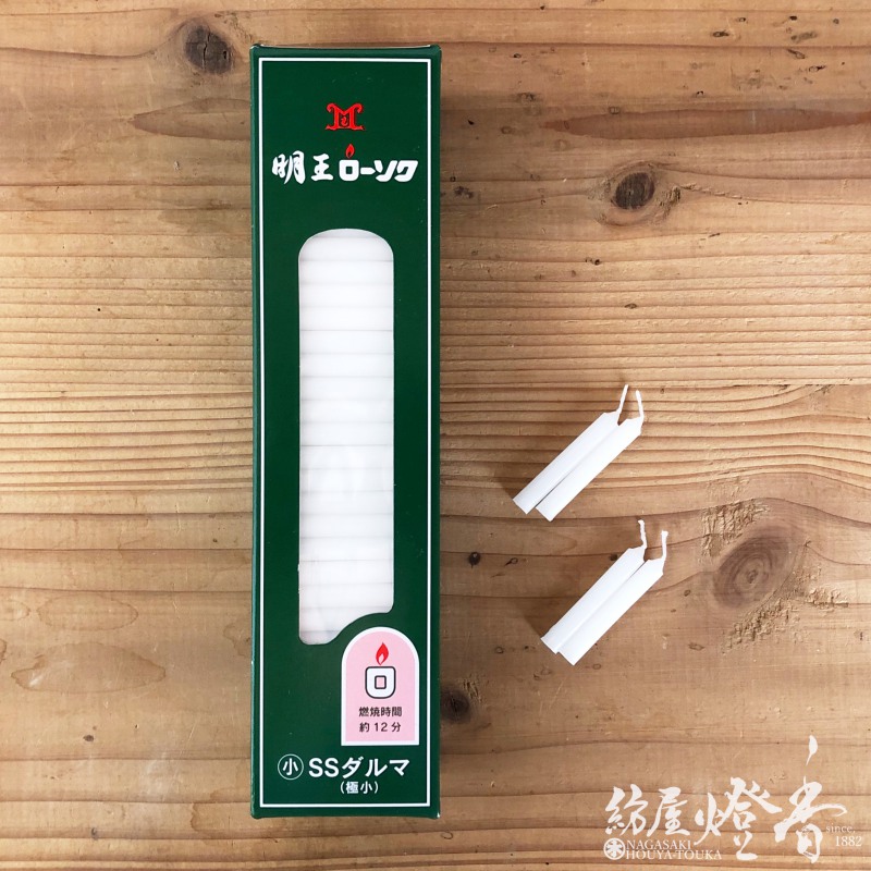 普通蝋燭『明王ローソク【SSダルマ/小ロー/極小[200g/206本]】紙箱[燃焼12分]』マルエス
