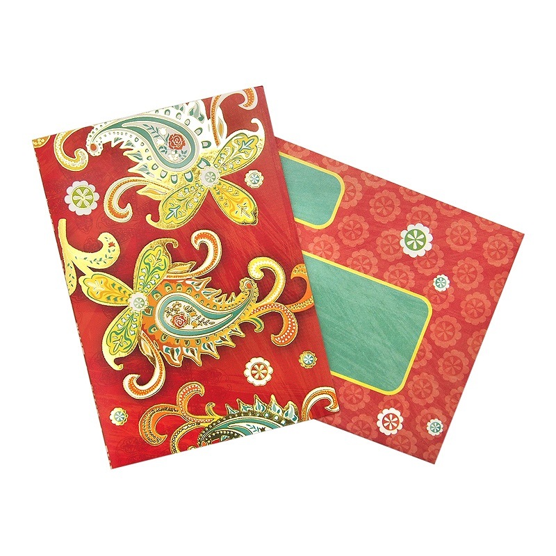 Punch Studio グリーティングカード 封筒セット (ペイズリー柄×赤)