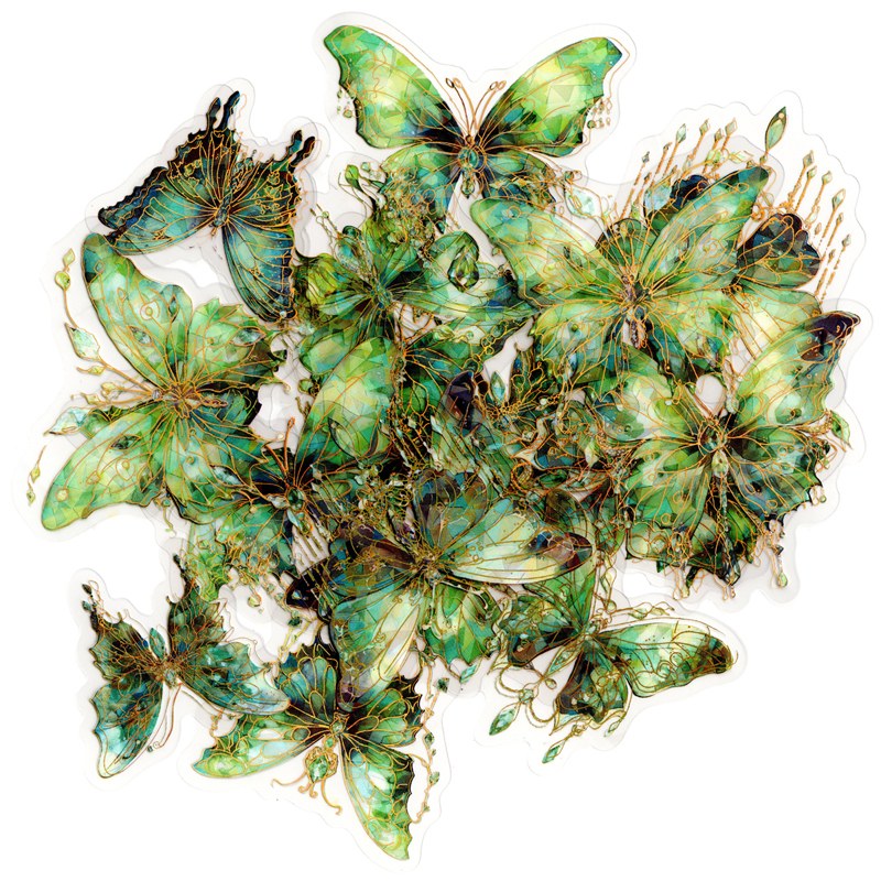 箔押し加工シール バタフライシリーズⅡ 緑 20枚セット PTE素材