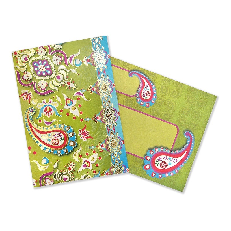 Punch Studio グリーティングカード 封筒セット (ペイズリー柄×黄緑)