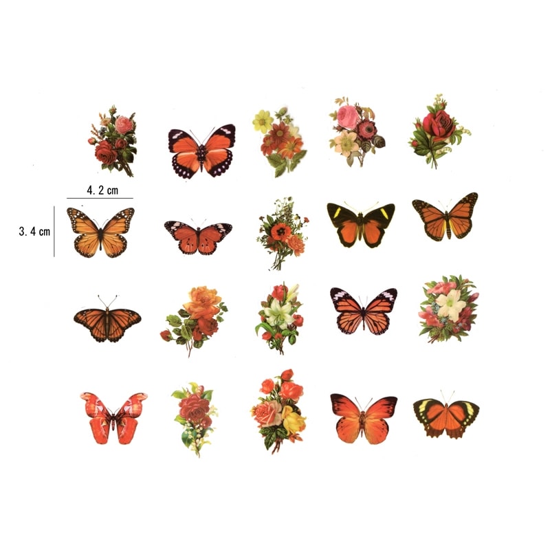 箔押し加工シール バタフライシリーズⅡ 20枚セット PTE素材