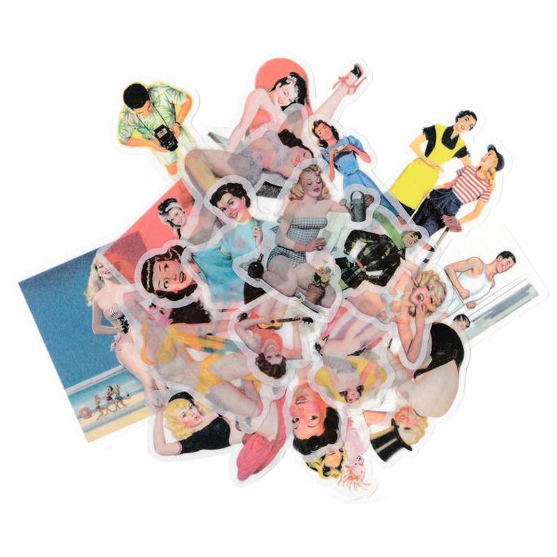 フレークシール セット スクラップ素材 (女性のレトロなイラスト) 和紙素材