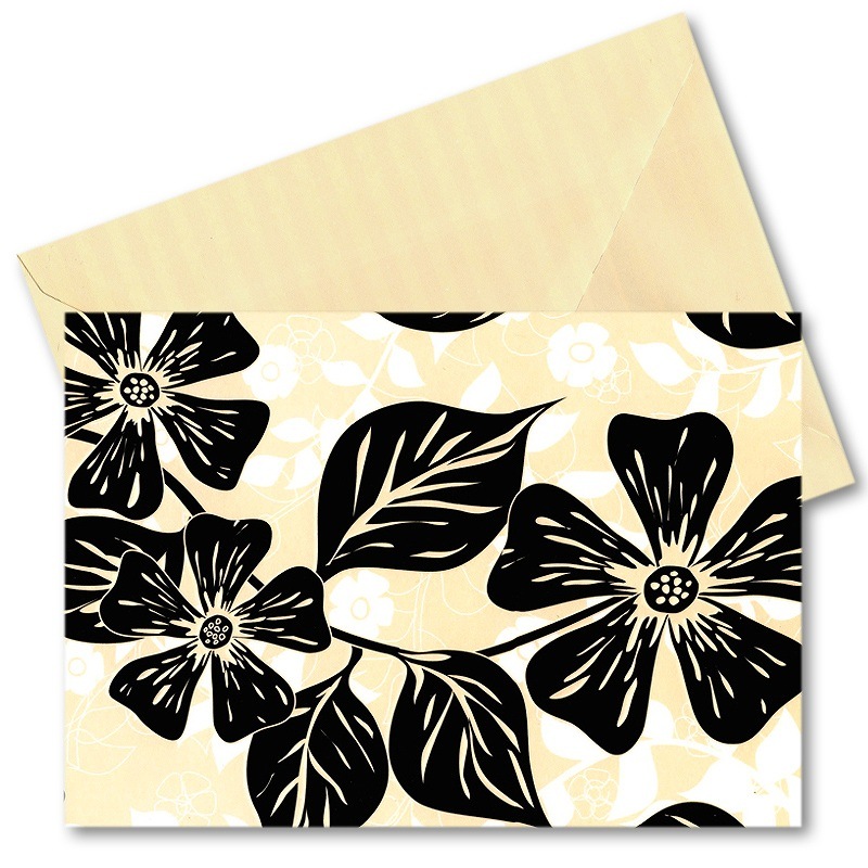 ロジャーラボード 【多目的】 グリーティングカード Lサイズ (フラワー×ブラック×背景クリーム色)エンボス加工