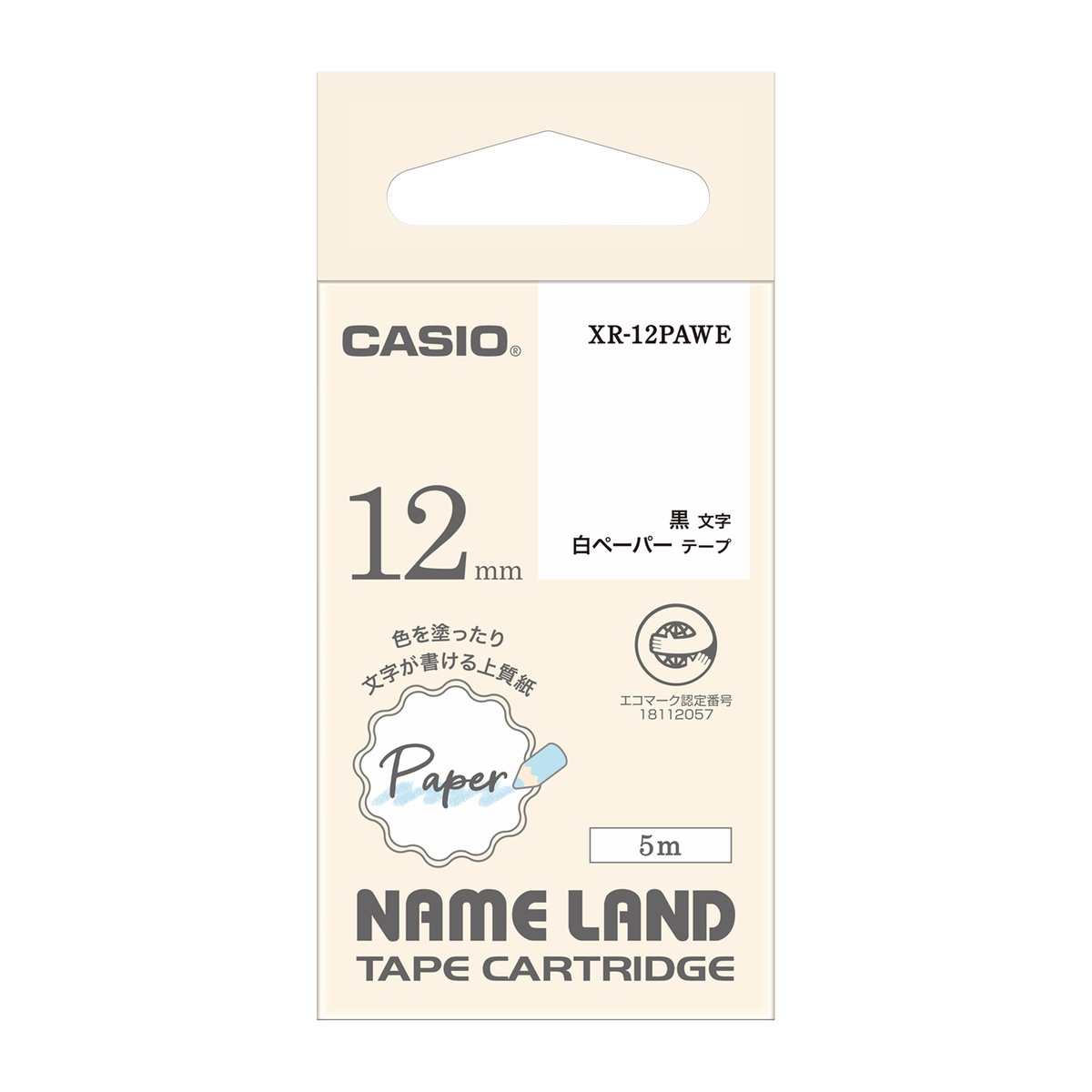 [XR-12PAWE] ネームランドテープ ペーパーテープ (白色テープ 黒文字 幅12mm・長さ5m)
