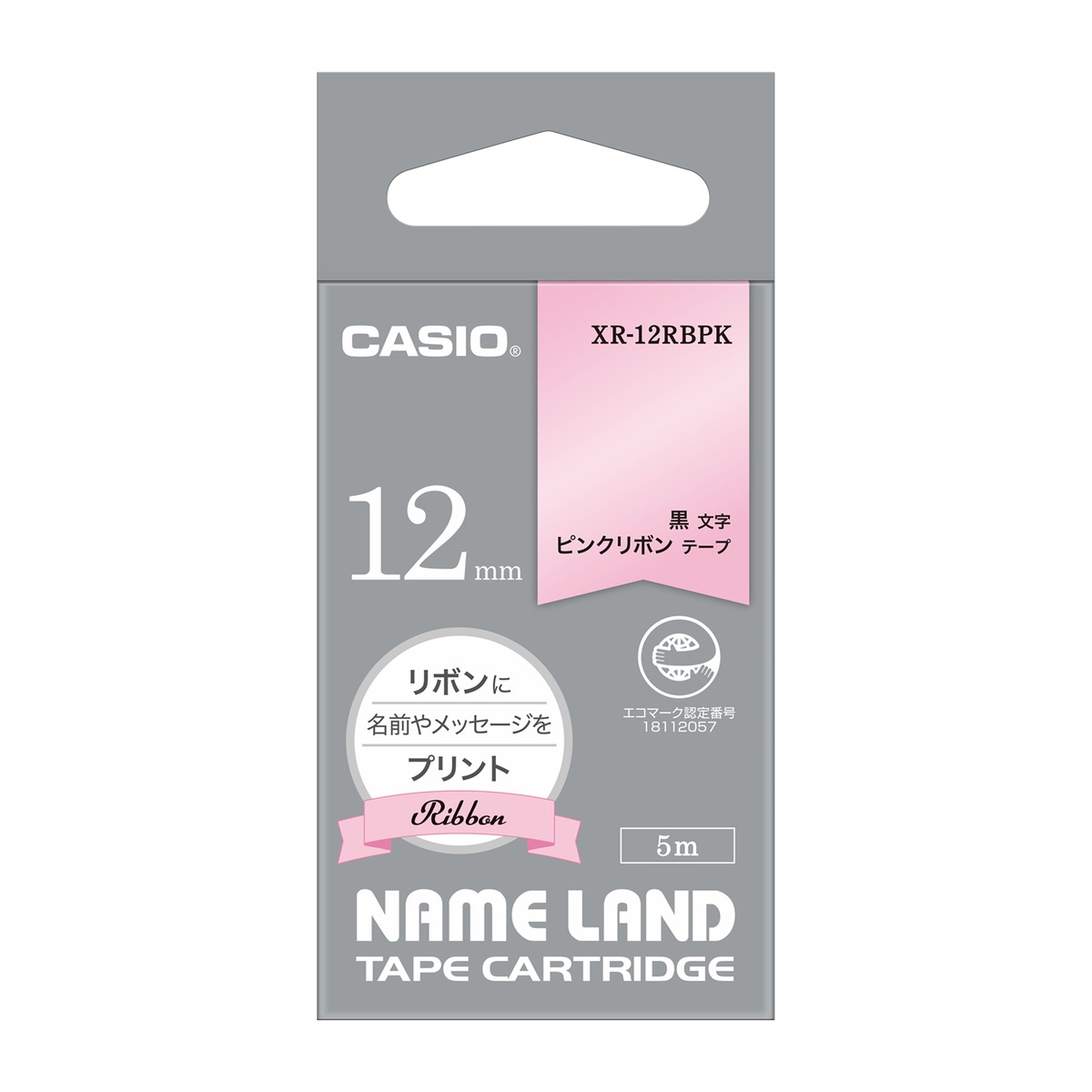 [XR-12RBPK] ネームランドテープ リボンテープ (ピンクリボンテープ 黒文字 幅12mm・長さ5m)