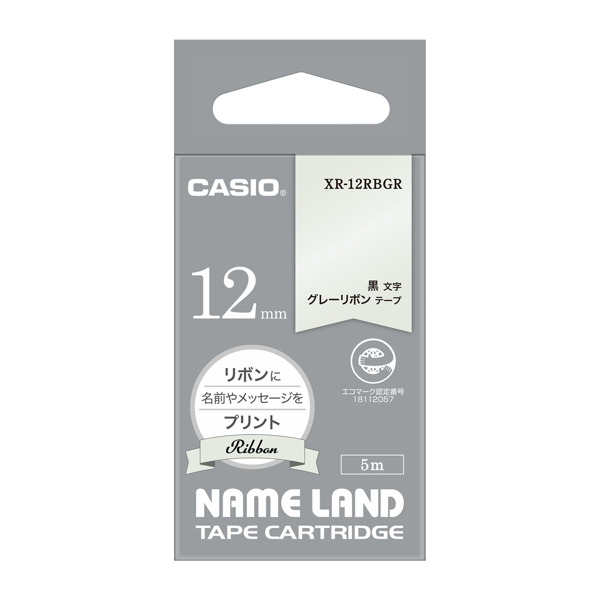 [XR-12RBGR] ネームランドテープ リボンテープ (グレーリボンテープ 黒文字 幅12mm・長さ5m)