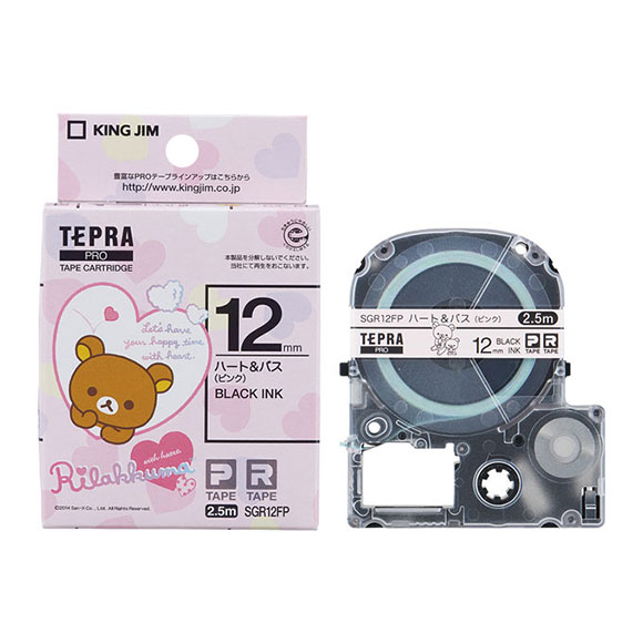 [SGR12FP] テプラPROテープカートリッジ 12mm リラックマラベル ハート ピンク/黒文字