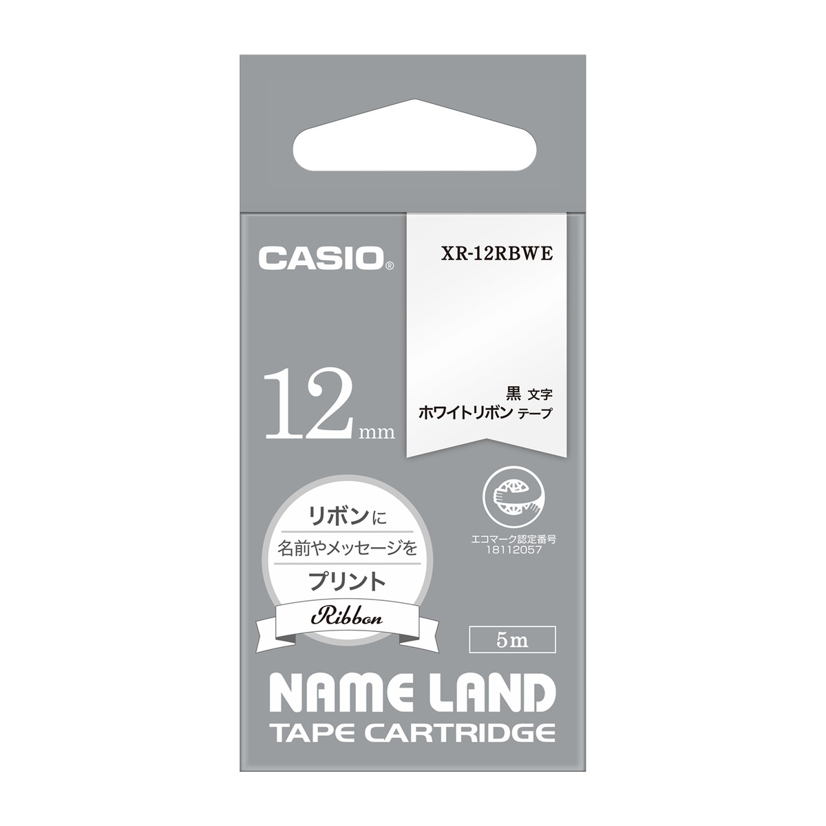 [XR-12RBWE] ネームランドテープ リボンテープ (ホワイトリボンテープ 黒文字 幅12mm・長さ5m)