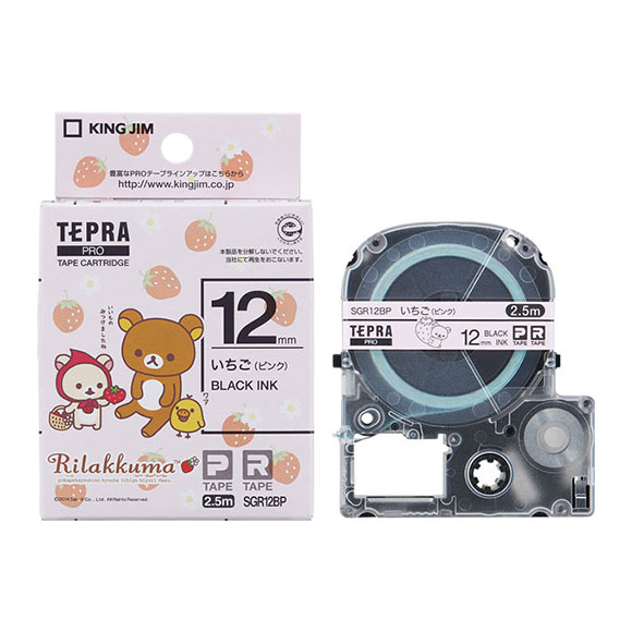 [SGR12BP] テプラPROテープカートリッジ 12mm リラックマラベル いちご ピンク/黒文字