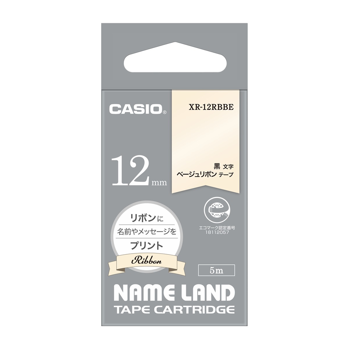 [XR-12RBBE] ネームランドテープ リボンテープ (ベージュリボンテープ 黒文字 幅12mm・長さ5m)